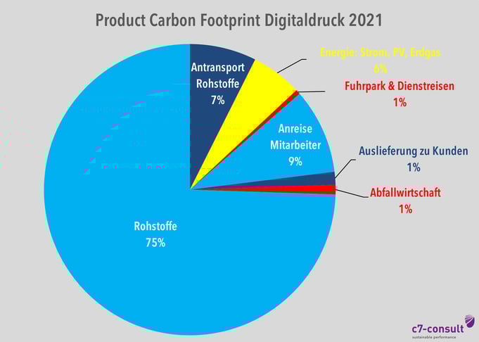 c7-consult hat sämtliche Treibhausgasemissionen der Digitaldruckproduktion berechnet. Die Bilanz umfasst alle dafür notwenidigen Rohstoffe wie Papiere, Farben und Verpackungskarton. Der zugekaufte Strom wird aus 100 % Wasserkraft gewonnen; zusätzlich befindet sich am Dach der Produktion im oberösterreichischen Freistadt eine PV Anlage.